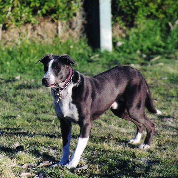 Male NZ Collie-white and black, super eager to work, big dog, loves kids